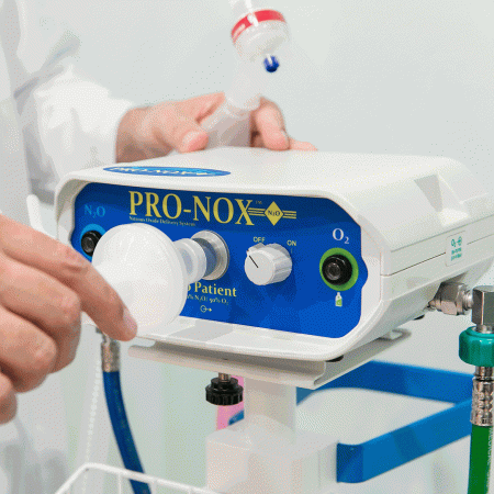 The Pro-Nox™ is a pneumatically driven gas system designed to deliver a 50% oxygen and 50% nitrous oxide mixture to patients for the relief of pain and anxiety in aesthetic procedures.